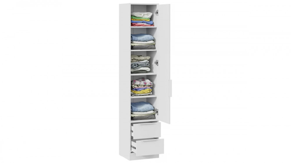 Назначение: Мебель для хранения Количество дверей: 1 Гарантийный срок: 24 месяца Комната использования: Молодежная, Офис Материал кромки каркаса: ПВХ Стиль: Современный Тип шкафа: Шкаф с распашными дверями, Шкаф с выдвижными ящиками Материал кромки фасада: ПВХ Тип: Шкаф комбинированный Расположение: Напольный Тип направляющих ящиков: Шариковые Наполнение: Полки ЛДСП, Ящики Материал каркаса: ЛДСП Направление открытия двери: Определяется при сборке Материал ручек: Металл Производство: Россия Габаритная ширина: 436 Габаритная высота: 2 132 Форма предмета: Прямоугольный Габаритная глубина: 407 Количество ящиков: 2 Модель: Марли (корпус) Срок службы: 5 лет Материал фасада: ЛДСП Оттенок: Белый Цвет: Белый Цвет каркаса: Белый (поры дерева) Цвет фасада: Белый (поры дерева) Оттенок каркаса: Белый Оттенок фасада: Белый Тип сборки: Универсальный левый/правый Наличие механизма раскладки: Нет Наличие спального места: Нет