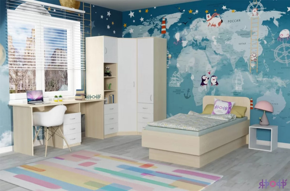 Один из модулей комнаты, красивый, современный, вместительный шкаф.