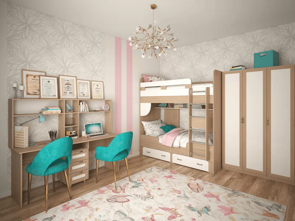 1. Стол рассчитан на два рабочих места и предназначен для обстановки комнаты двоих детей.