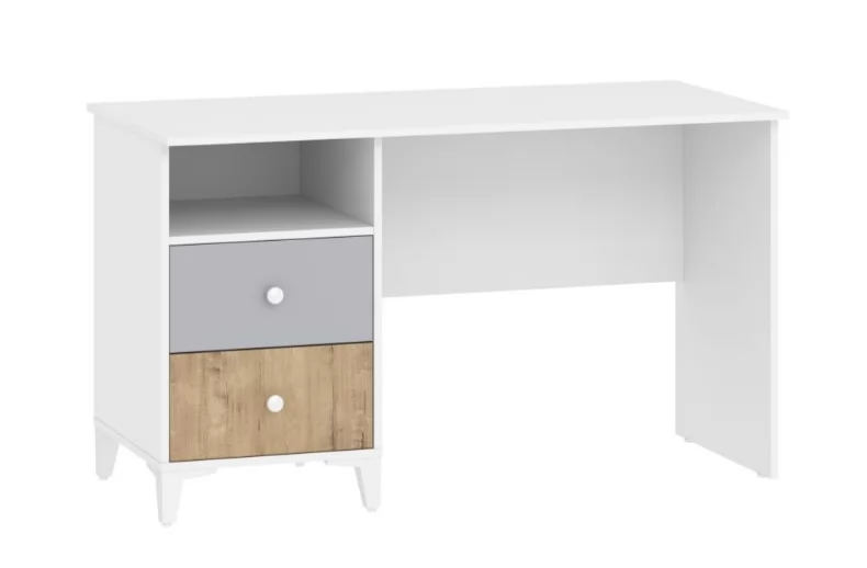 Скандинавская стилистика не любит загромождения мебелью. Только функциональность и практичность. Модульная композиция Комплектации 3 включает: шкаф, письменный стол и кровать с мягкой спинкой. Высокие опоры придают легкость конструкции и не создают препятствий для проведения влажной уборки. Чтобы процесс обучения приносил ребенку больше положительных эмоций, необходимо обустроить комфортное место для занятий дома. Письменный стол поможет комфортно и удобно делать домашнее задание, выполнять различные работы. Если правильно спланировать интерьер, в детской будет много места для хранения и пространства для игр.