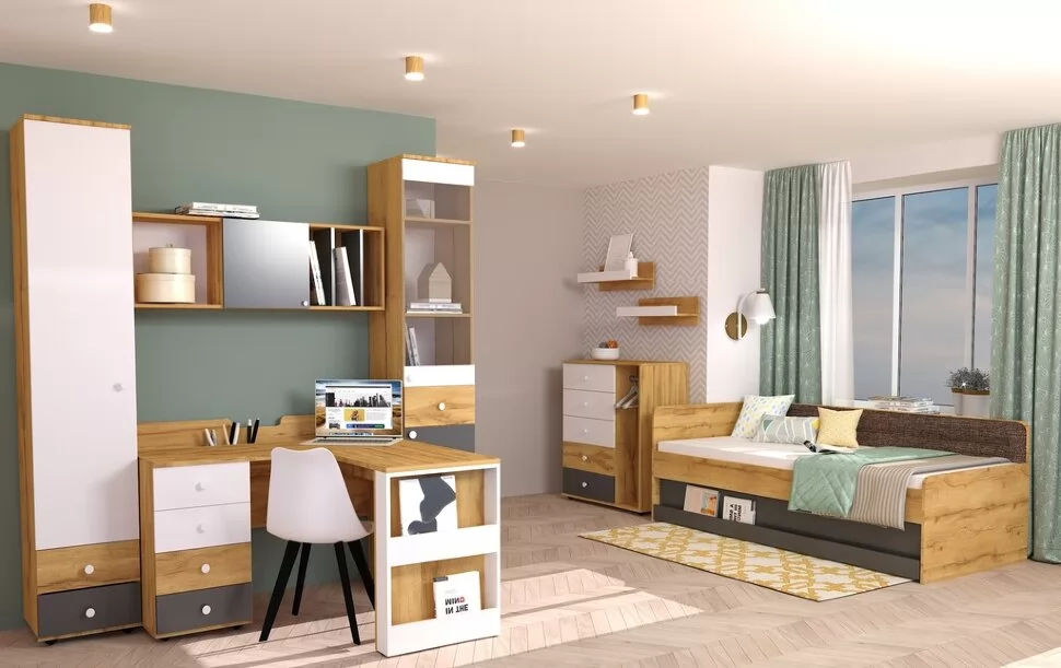 «Функциональность во всем!» – именно так можно описать новую коллекцию Глазовской мебельной фабрики.Все элементы коллекции ЛОЙС детально проработаны, надежны, безопасны, при этом выглядят ярко и максимально привлекательно для детей, помогают им подчеркнуть свою индивидуаль - ность, а также создать стильный, неповторимый и запоминающийся интерьер.Модная цветовая палитра: сочетание Белого, Графита и теплого древесного декора Дуб Золотистый, многофункциональные модули, множество «фишек» - отличная почва для творчества и самовыражения подростка или детей младшего возраста.Меняйте цвета фасадов шкафов, выбирая Белый или Графит, переставляйте выдвижные ящики местами меняйте пространство под себя. Все модули рекомендуем крепить к стене за подвесы.