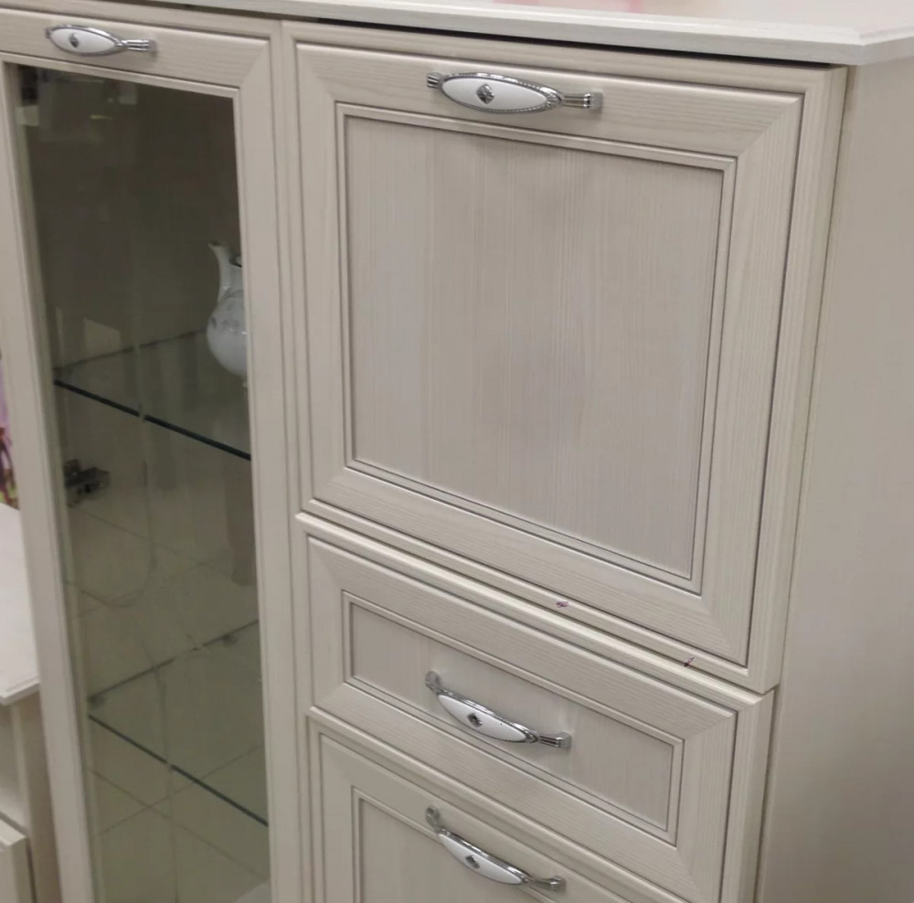 Гостиная «Венеция» выполнена в светлом декоре «Бодега светлая», в лучших классических традициях. Шариковые направляющие полного выдвижения обеспечивают комфортную эксплуатацию выдвижных ящиков, и использование всего пространства ящика. Ручки металлические цвет – «Хром глянцевый» с белой вставкой