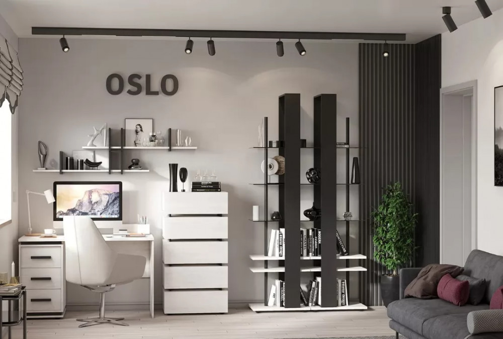 Мебель коллекции OSLO в стиле лофт позволит создать необычный интерьер в вашем жилье. Мягкий древесный декор и черные элементы в модулях гостиной OSLO идеально сочетаются друг с другом.