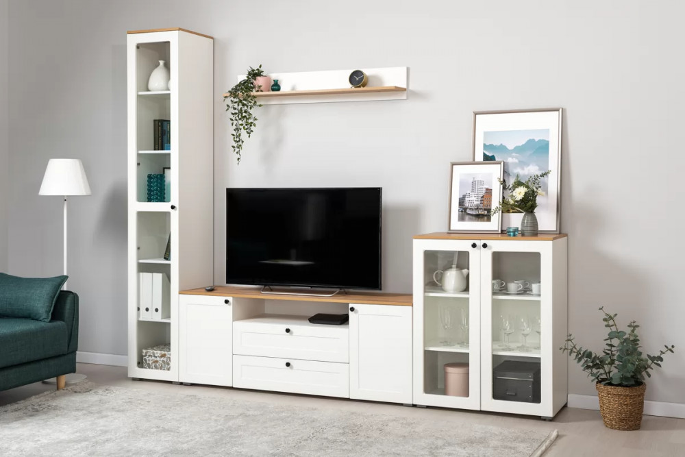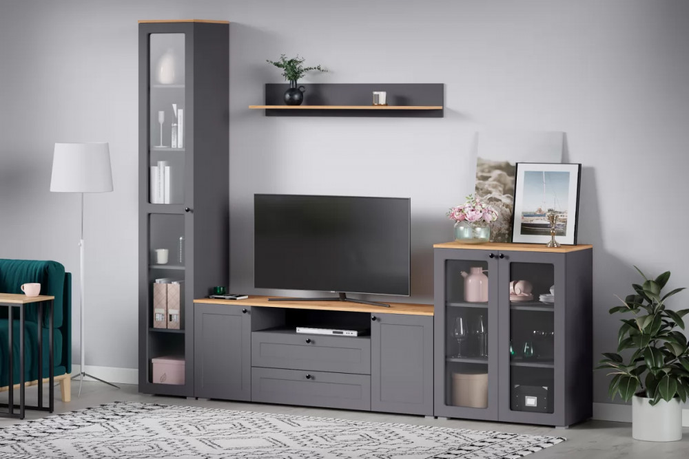 Доступна в двух цветовых решениях – белый/графит в сочетании с теплым древесным декором.