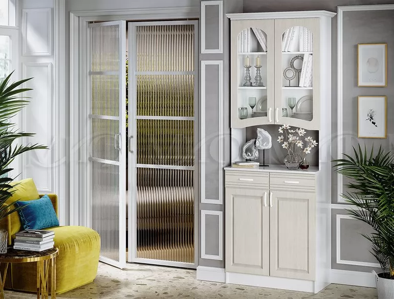 Ширина (мм): 800 Высота (мм): 2270 Глубина (мм): 430 Материал: МДФ/Стекло Цвет: Белый матовый, Сандал, Белый матовый/Голубой, Белый матовый/Джинс, Джинс, Мускат, Фисташка, Дымчатый Вес, кг: 67.5