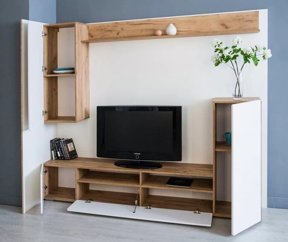 2. Гостиная состоит из двух частей: монолитной напольной и навесной.