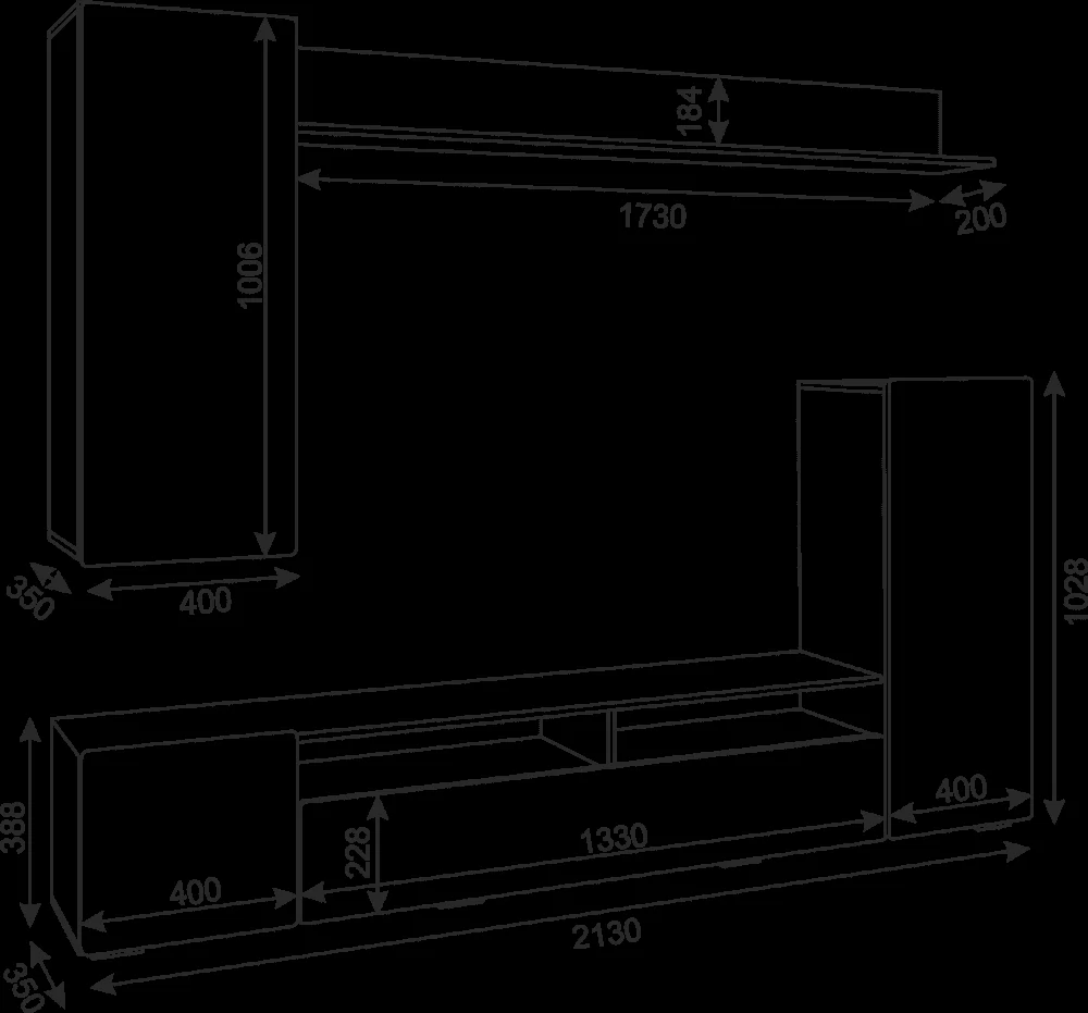 Место под ТВ: 1330мм