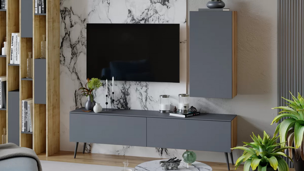Гостиная «Порто» №3 Яблоня Беллуно, Графит софт в Муравленко