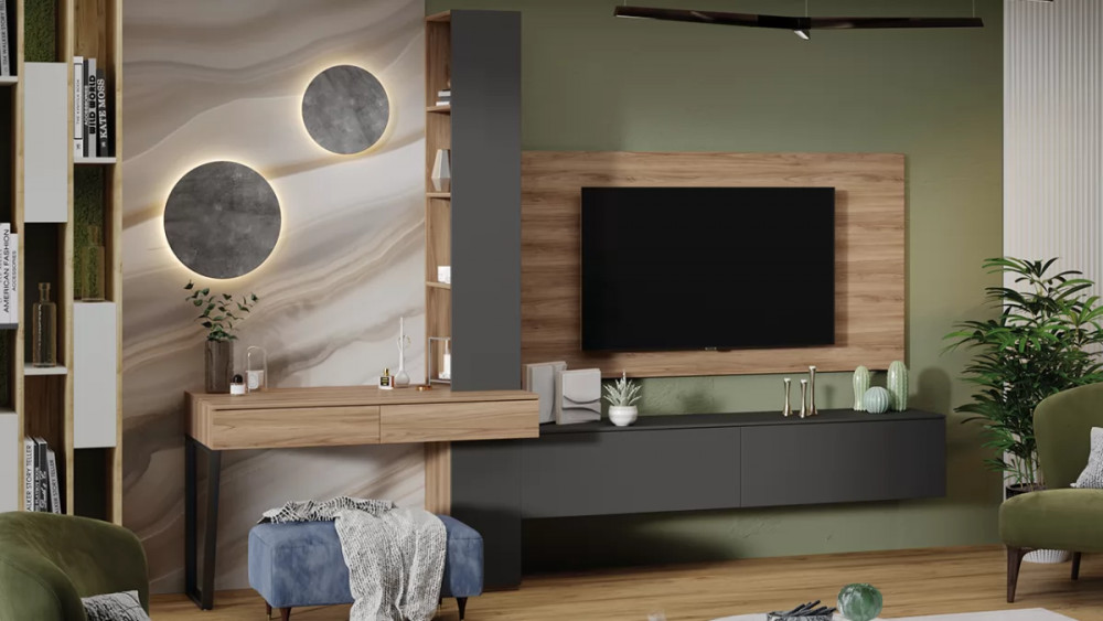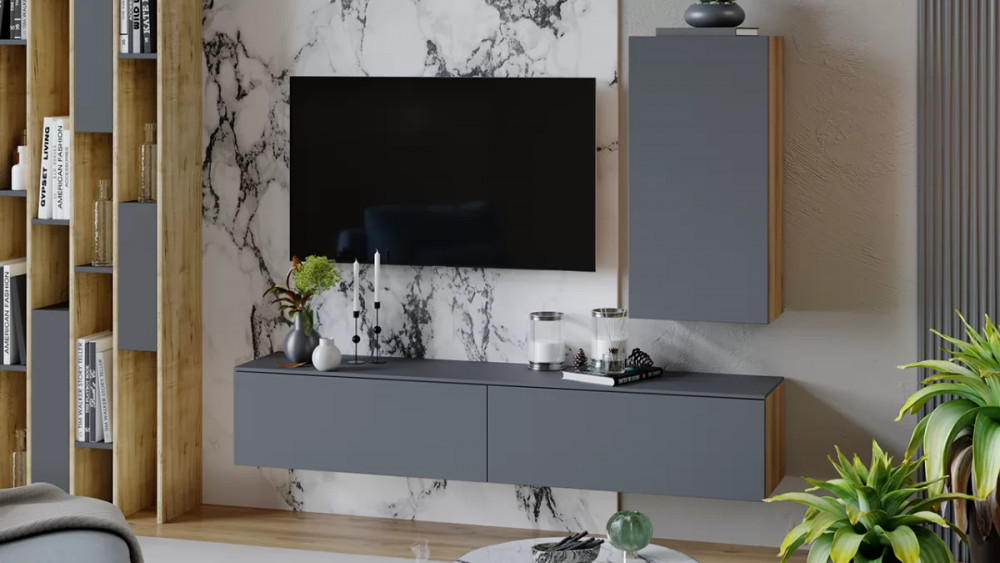 Модульная гостиная «Порто» Яблоня Беллуно, Графит софт в Муравленко