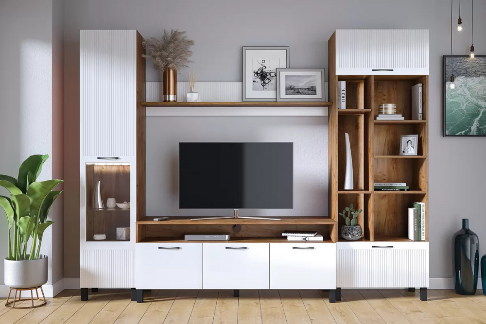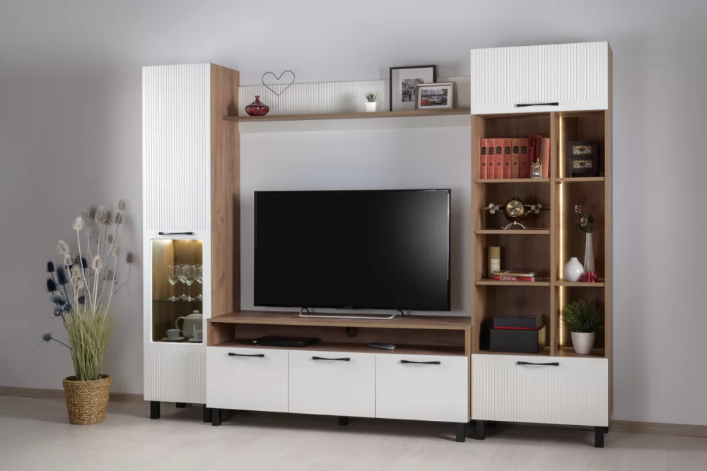 Тумба Манхеттен 13.231 будет отличным дополнением интерьера любой комнаты. Изделие поможет разместить телевизор для более комфортного просмотра новостей, сериалов и различных телепередач. Открытая ниша предназначена для необходимой аппаратуры. А три выдвижных ящика пригодятся для хранения различных вещей и предметов.