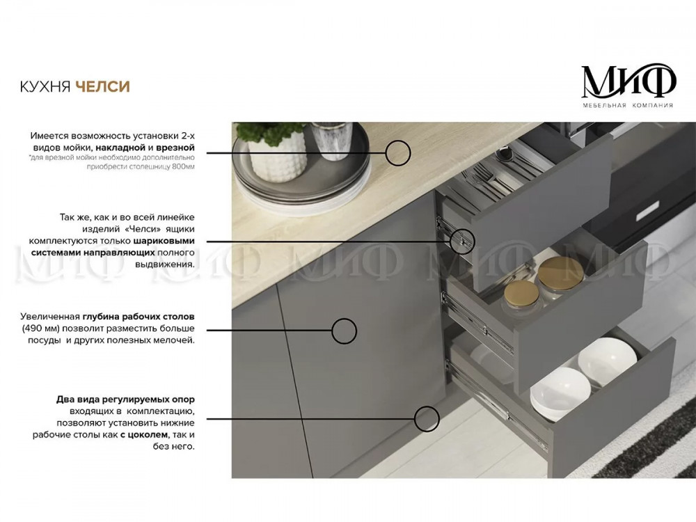 • Корпус: Графит, ЛДСП, 16 мм, кромка - Графит