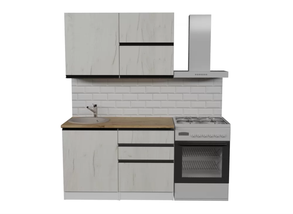 Мойки, смесители и посудосушители в комплекты гарнитуров не входят.