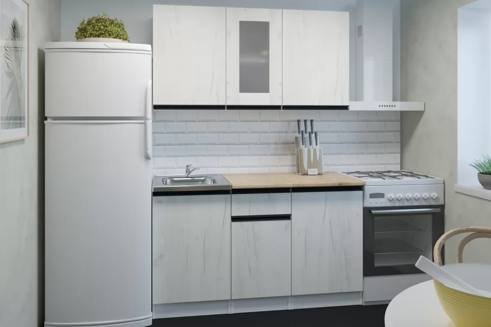 Прямые готовые кухни рациональны для маленьких квартир. При прямой планировке кухни важно предусмотреть место для холодильника и учесть его габариты. Если ваша кухня объединена с гостиной, или же настолько просторная, что позволяет сделать полноценную обеденную зону для большой семьи, то смело выбирайте линейную конфигурацию кухни.