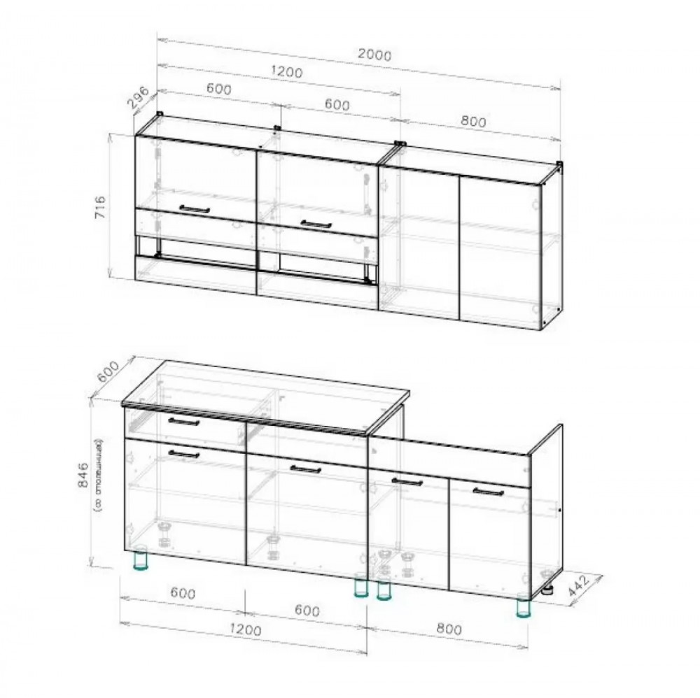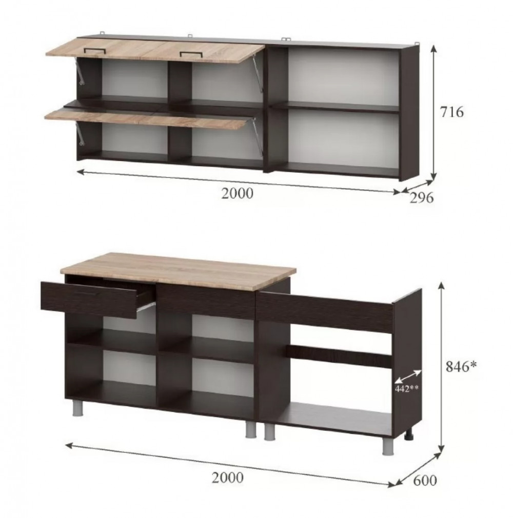 *Ширина гарнитура2000 мм