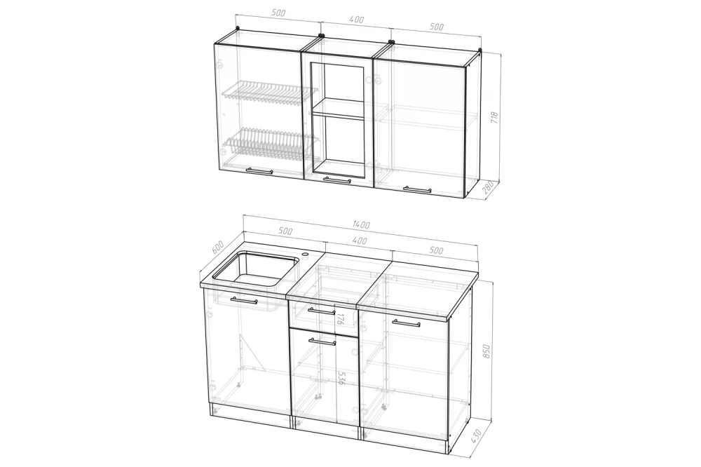 *Ширина гарнитура1400 мм