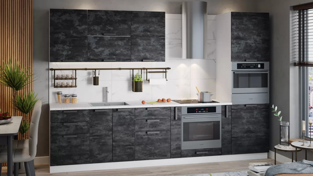 В стоимость не включено: Стеновая панель, столешница, доводчики, бытовая техника, мойка, смеситель, аксессуары