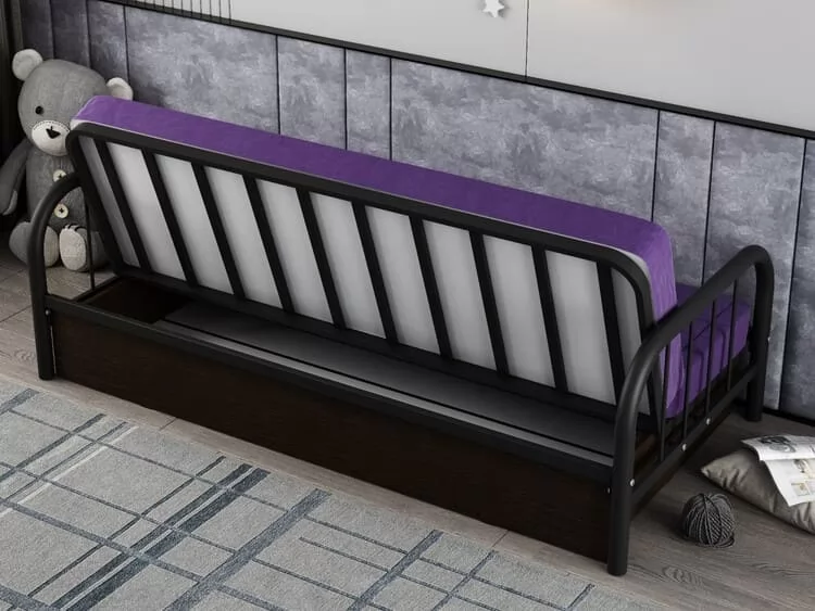 Материал: каркас — сталь, стойки боковины (труба) Ø51, основная труба лежака 40х20 мм, чехол дивана — ткань (велюр, стеганный на 100 гр холконе). Механизм разложения дивана: трехпозиционная книжка. Размер спального места, см: 120х190. Допустимая нагрузка на спальное место: 180 кг. Высота: 87 см Ширина: 200 см Глубина: 97 см Вес упаковки: 73 кг Объем упаковки: 0.526 м3