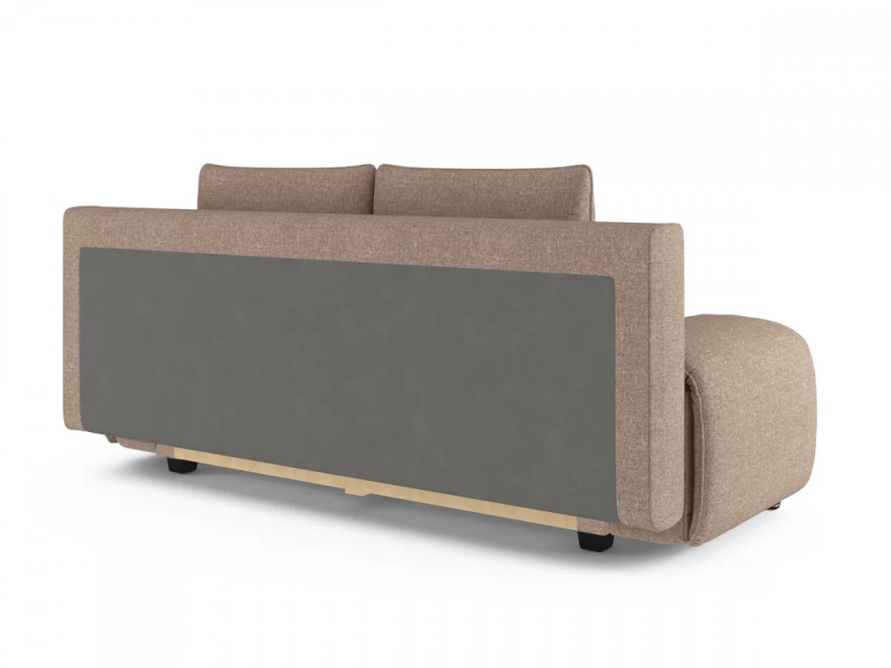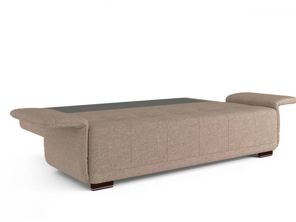 Оригинальный подлокотник с механизмом трансформации уменьшают габариты дивана в сложенном ввиде и организуют рабочцю поверхность в сложенном ввиде.