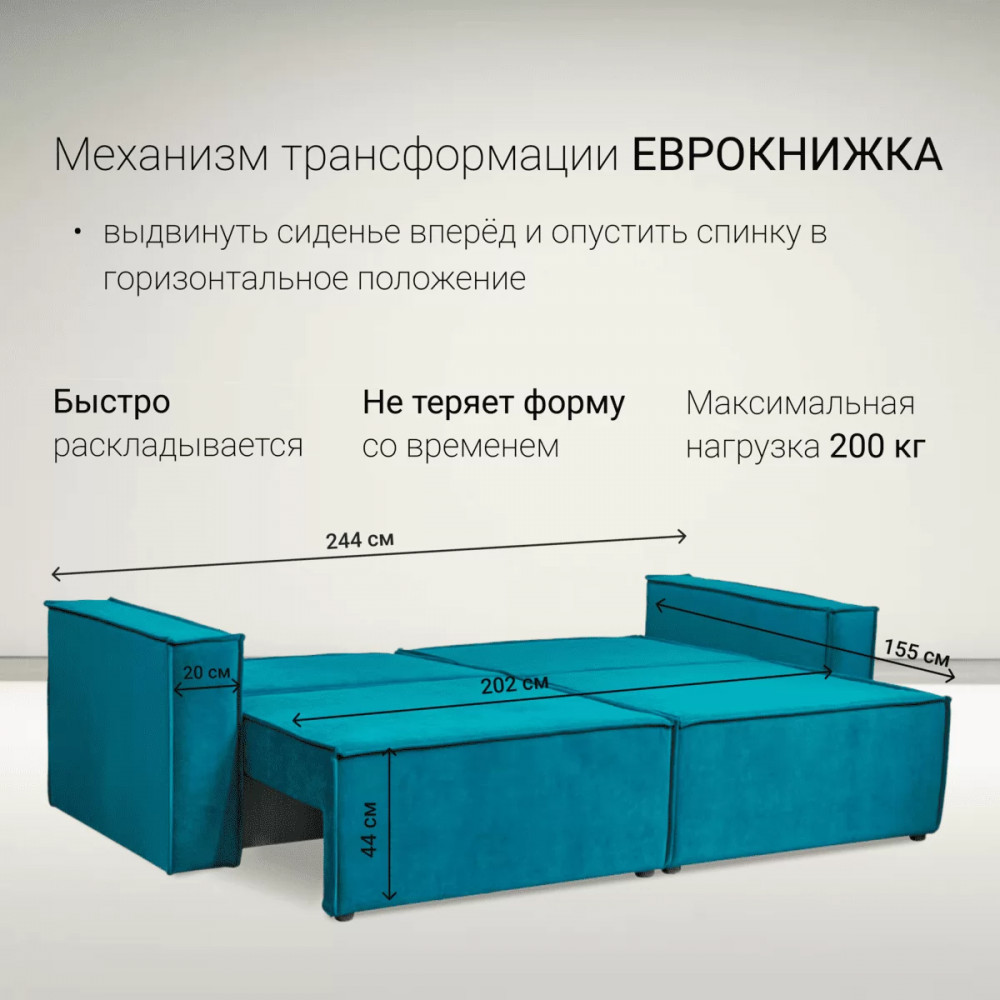 Диван имеет удобную конструкцию «Еврокнижка», с помощью которой образуется полноценное спальное место