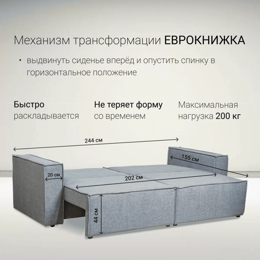 Диван имеет удобную конструкцию «Еврокнижка», с помощью которой образуется полноценное спальное место