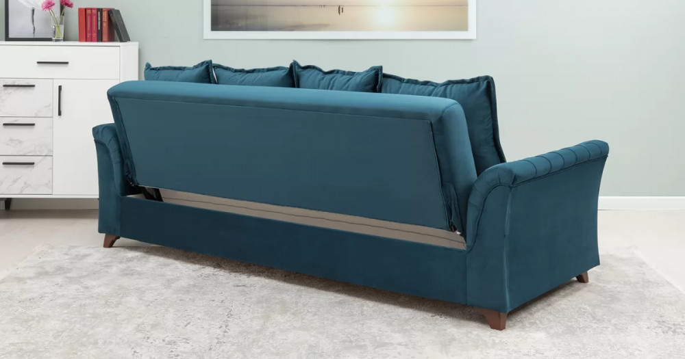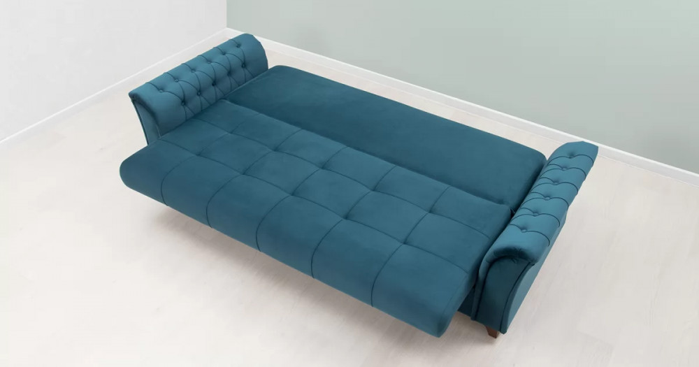Габаритысложенный (Д x Г х В, мм): 2450 x 1060 x 890спальное место (Д x Ш, мм): 1950 x 1310высота посадки (мм): 460глубина сиденья (мм): 540максимально допустимая нагрузка: 80 кг на одно посадочное место, 100 кг на одно спальное местоМеханизм трансформации-Книжка с 0 стенойБельевой ящик-есть  перегородкой по центру (2 отделения)размер отделения (Д x Ш, мм): 890 x 840 x 200каркас: фанерадеревянный брус