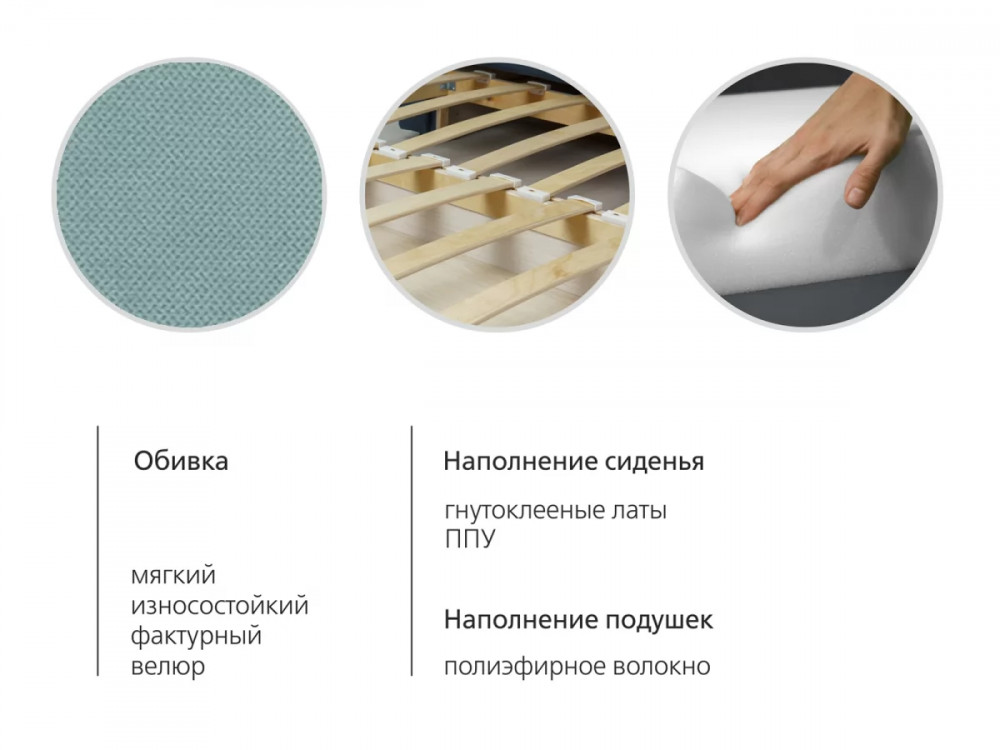 ППУ на основании из гнутоклееных латдекоративные подушки, шт: 2наполнитель подушек: полиэфирное волокно «шарики»материал опор: пластикцвет опор: черныйвысота опор (мм): 25ДекорНа фронтальной части спинки дивана прострочены защипы (3 шт.). По торцам втачен кант. На декоративных валиках прострочены защипы -2 шт. и защип вдоль круглого торца. Сидение имеет 3 защипа. Верхний торец подлокотников полукруглый, на ребре полукруга втачен кант.Назначениев молодежную