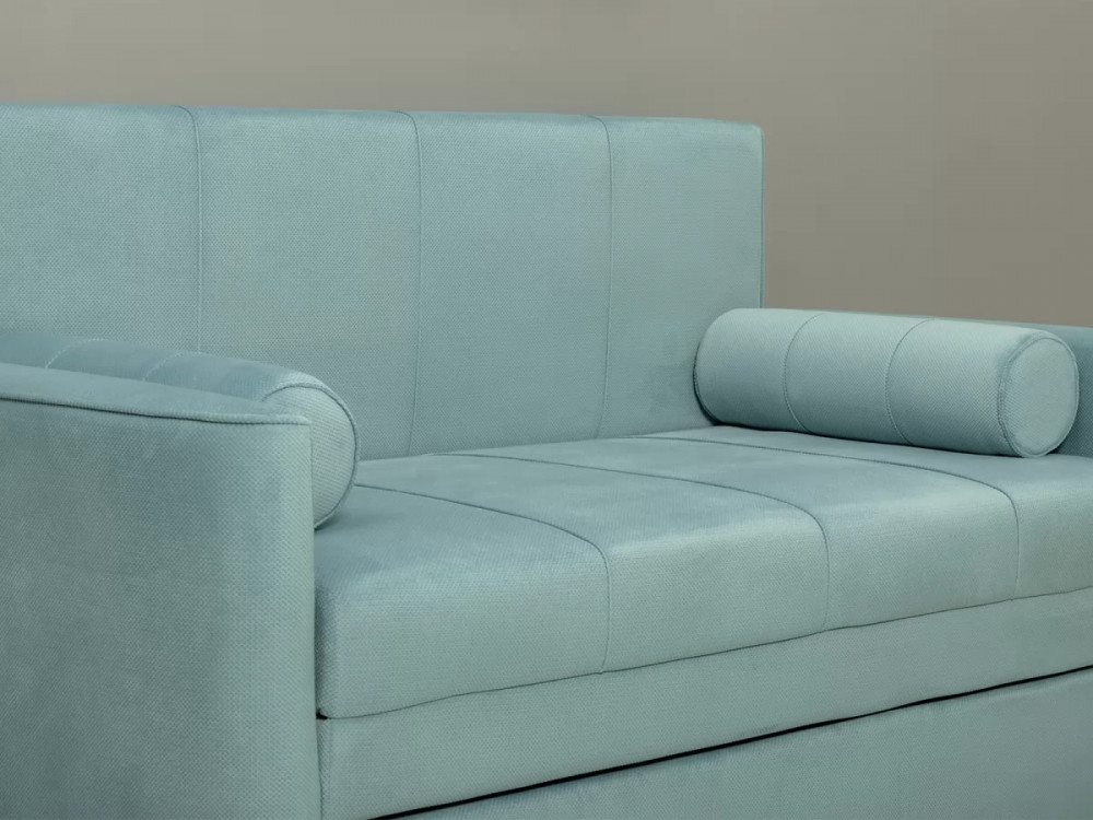 Диван-кровать Мелани Р (120) - компактный современный диванчик. Скругленные подлокотники с кантами подчеркивают эргономичность модели. Простой и надежный механизм трансформации на каждый день обеспечит удобным спальным местом ребенка или подростка. Может использоваться в качестве гостевого спального места для взрослого. Размер сп. места 195 х 120 см, есть небольшой бельевой ящик. Диван выполнен в мягком фактурном велюре. "Пальчиковый эффект" на ткани обивки выражен средне. Опоры - цвет черный, круглые, высота 25 мм., выполнены из высококачественного пластика. Прочность конструкции ножек обеспечена ребрами жесткости и внутренним креплением под фурнитуру.
