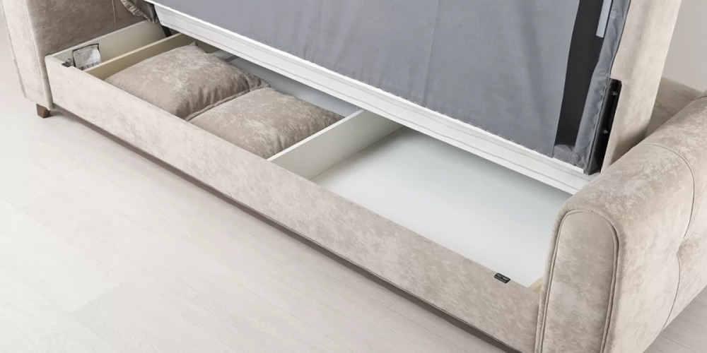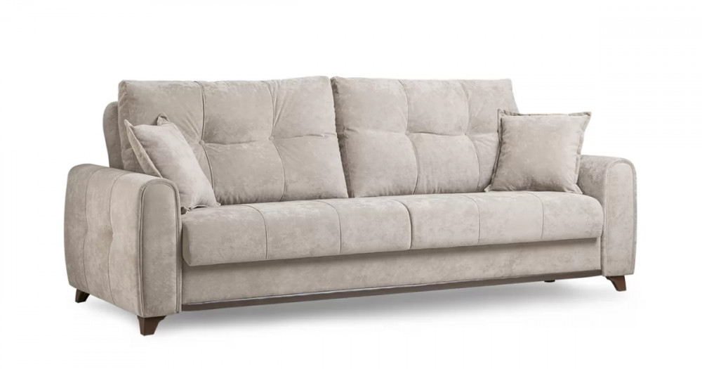 ДВПооснование матраса: ППУ на блоке плоских пружин "змейка"приспинные подушки, шт: 2съемные чехлы приспинных подушек: естьдекоративные подушки, шт: 2наполнитель подушек: крошка поролона и полиэфирное волокноматериал опор: пластикцвет опор: коричневыйвысота опор (мм): 80Бельевой ящикестьс перегородкой по центру (2 отделения)размер отделения (Д x Ш, мм):  890 x 840 x 200Требуется ли сборкадаУпаковкаколичество коробок, шт: 2общий вес с упаковкой, кг: 82,4Гарантия: 18 месяцевГабаритысложенный (Д x Г х В, мм): 2340 x 1050 x 910разложенный (Д x Г х В, мм): 2340 x 1310 x 600спальное место (Д x Ш, мм): 1950 x 1310высота посадки (мм): 470глубина сиденья (мм): 500высота спинки (мм): 540высота подлокотника от сиденья (мм): 180максимально допустимая нагрузка: 80 кг на одно посадочное место, 100 кг на одно спальное местоМеханизм трансформацииКнижка с 0 стенойБельевой ящикестьс перегородкой по центру (2 отделения)размер отделения (Д x Ш, мм):  890 x 840 x 200Декорзащипы на подушках и подлокотниках с утяжкой на 2 пуговицы из осн. материала, защипы на сидушке, декоративный кант на передних торцах подлокотников