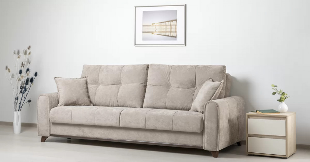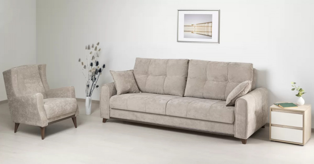 Плимут - современный диван с комфортной посадкой. Может быть дополнен креслом Плимут. Удачно впишется в любой современный интерьер благодаря универсальному дизайну и трендовым цветам обивки. При разложении не требует отодвигания от стены. Обеспечит полноценным ровным спальным местом двух человек.
