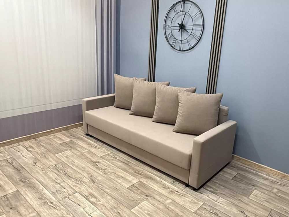 Простой в эксплуатации, надежный, качественный диван. Механизм трансформации «Пантограф» (тик-так) позволяет формировать ровное спальное место. Диван оснащен пристенной спинкой и вместительным коробом для спальных принадлежностей. Гармоничные сочетания тканей позволят оживить любой интерьер. Съемные подлокотники упрощают процесс транспортировки.