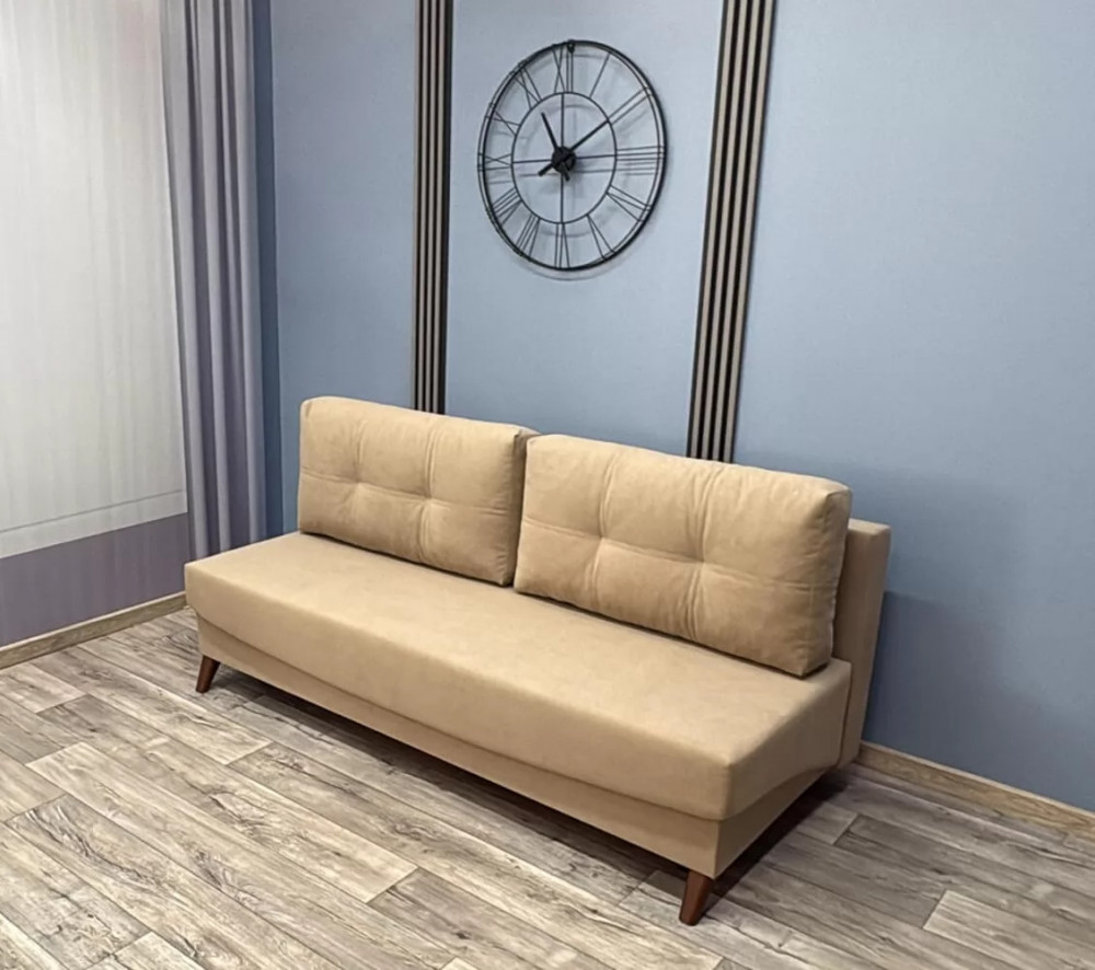 Прямые пропорциональные линии этого дивана актуальны во все времена. Механизм трансформации «Пантограф» (тик-так) позволяет формировать идеально ровное спальное место. Внутри расположен вместительный бельевой короб для постельных принадлежностей. Отсутствие подлокотников зрительно увеличивает размер дивана.