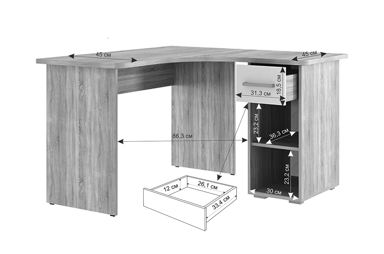 Стол компьютерный 1200 угловой Лайт-1 дуб сонома/белый