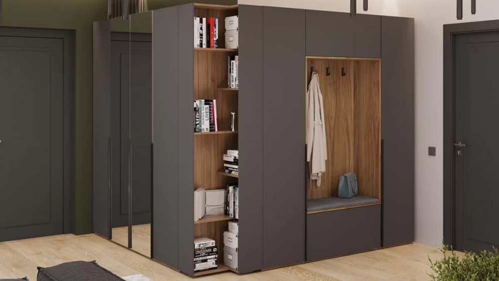 Прихожая «Порто» № 5 Яблоня Беллуно, Графит софт в Муравленко