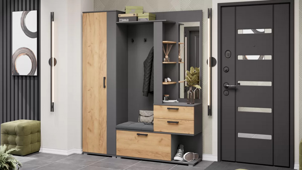 Прихожая «Эрика» Тип 2 Графит Серый, Дуб Крафт золотой в Муравленко