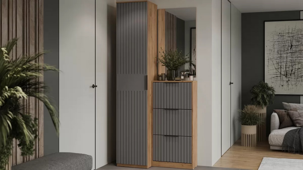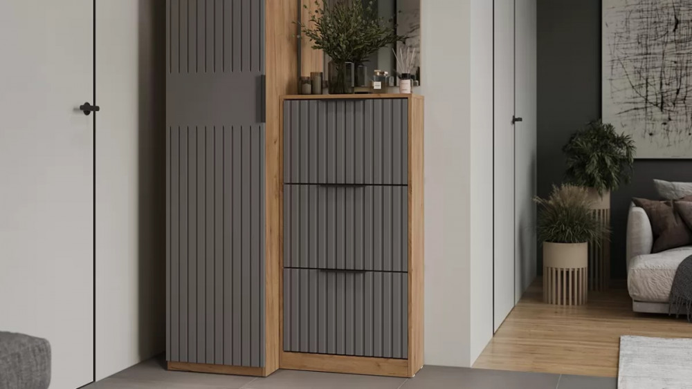 Тумба для обуви «Хилтон» Дуб Крафт золотой, Графит матовый в Муравленко