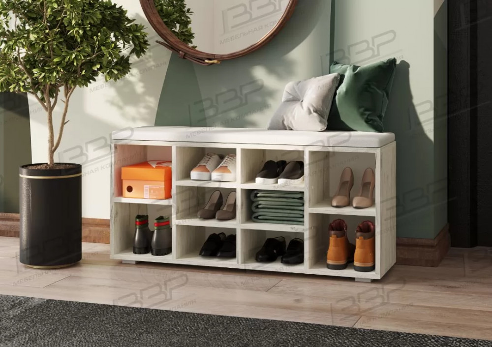 Современная и компактная обувница «Лоредо-2», с мягким основанием и множеством открытых полок для хранения, отлично впишется в самые разные стили современного интерьера.