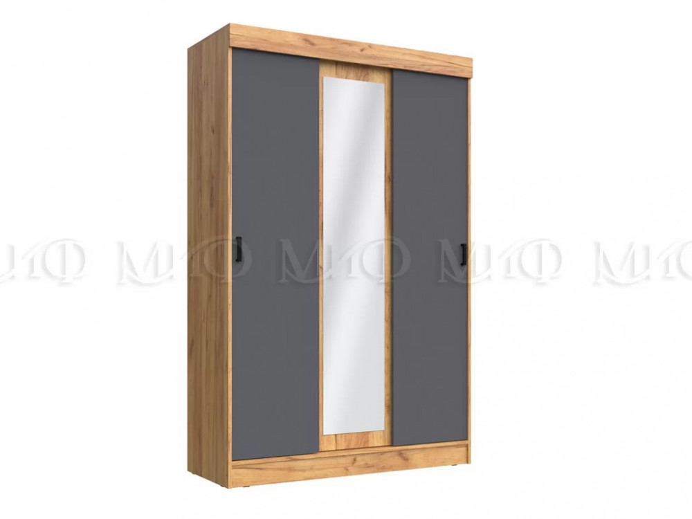 Шкаф-купе 3-х дверный «Румер-2» Дуб Крафт Табачный, Черный профиль