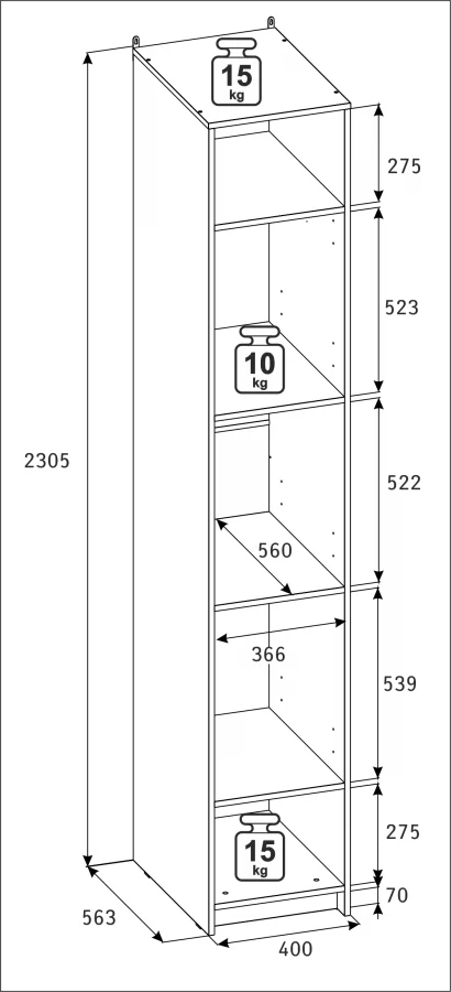 *Размеры (ВхШхГ), мм:2305х400х563 мм