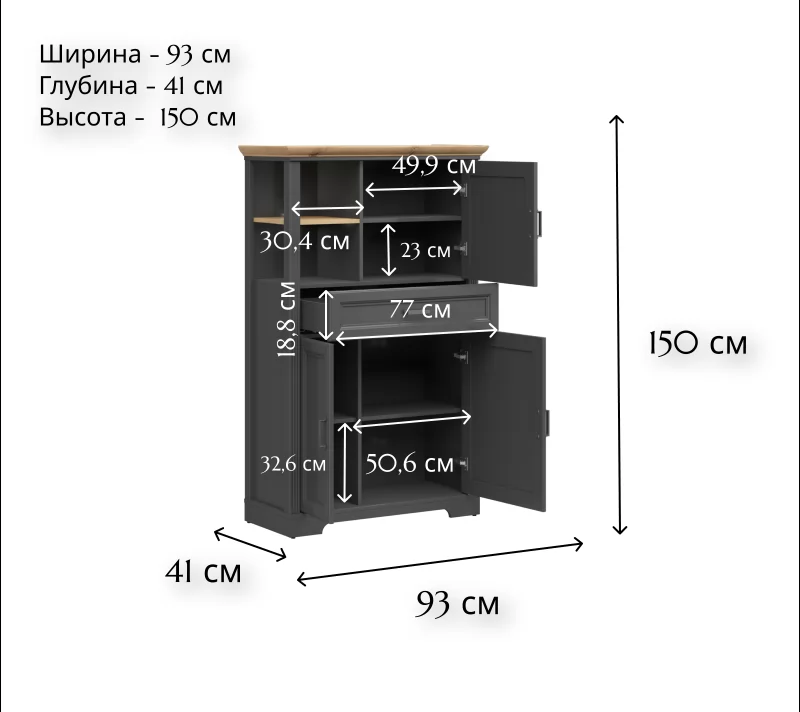 | Размер (ШxВxГ): | 930x1500x410 мм |