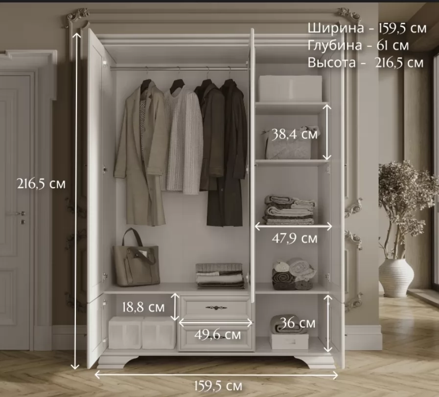 Заменит собой множество тумбочек, стеллажей и вешалок.