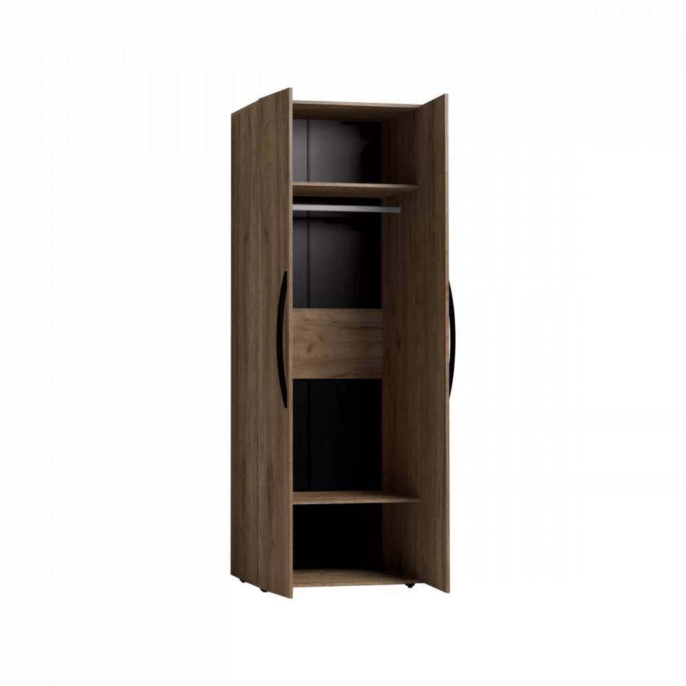 NATURE 54 Шкаф для одежды - классический шкаф для спальни. Фасады Стандарт с ручками, укутанными в экокожу. Шкаф комплектуется стационарной штангой длиной 757 мм, на которой можно разместить до 10 плечиков с верхней одеждой, а также двумя полками. Регулируемые опоры компенсируют незначительные неровности пола.