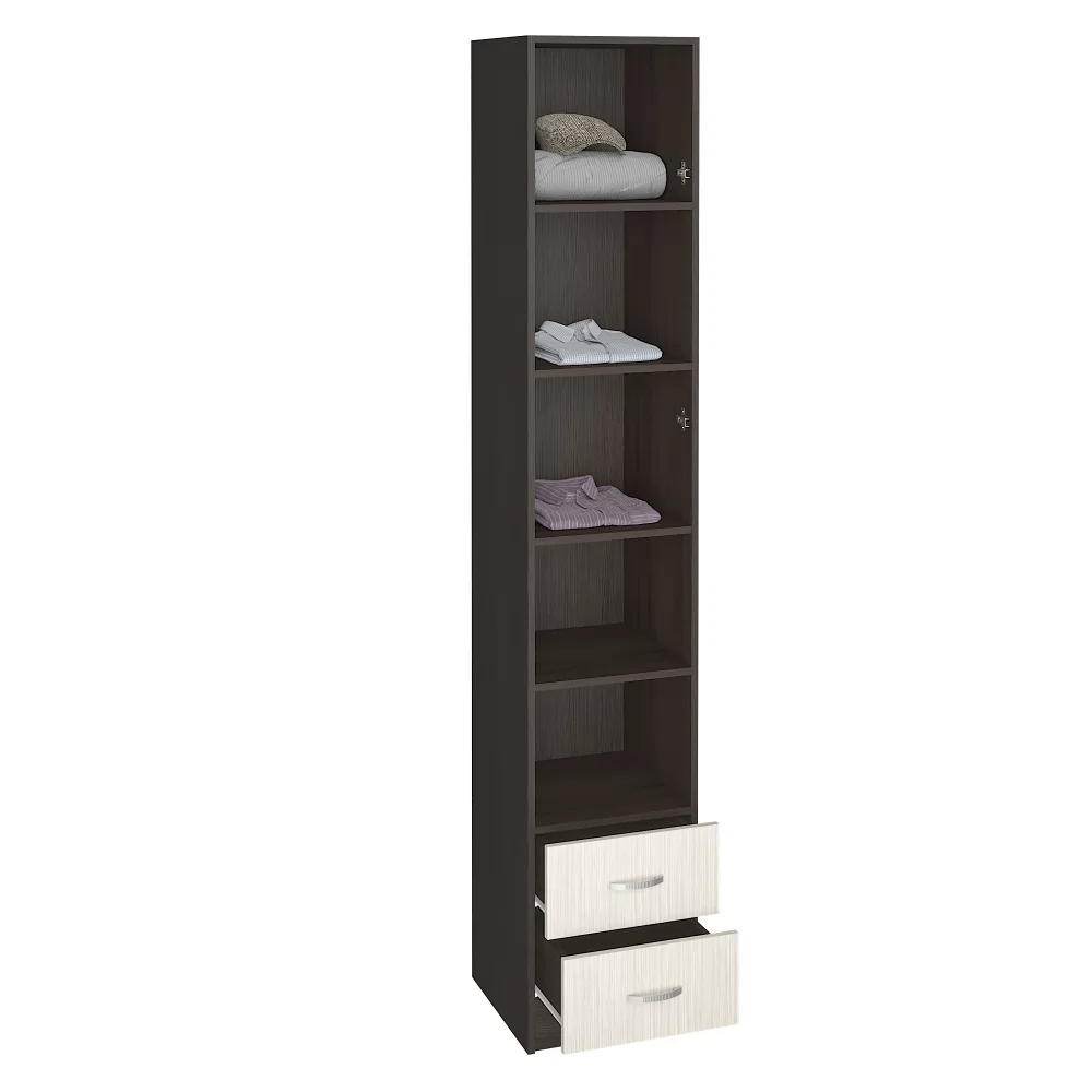 Ширина (мм): 400 Высота (мм): 2200 Глубина (мм): 420 Материал: ЛДСП Цвет: Венге/Дуб белфорд Вес, кг: 44.3 Объем, м3: 0.08 Количество упаковок: 2 Коллекция: Вега