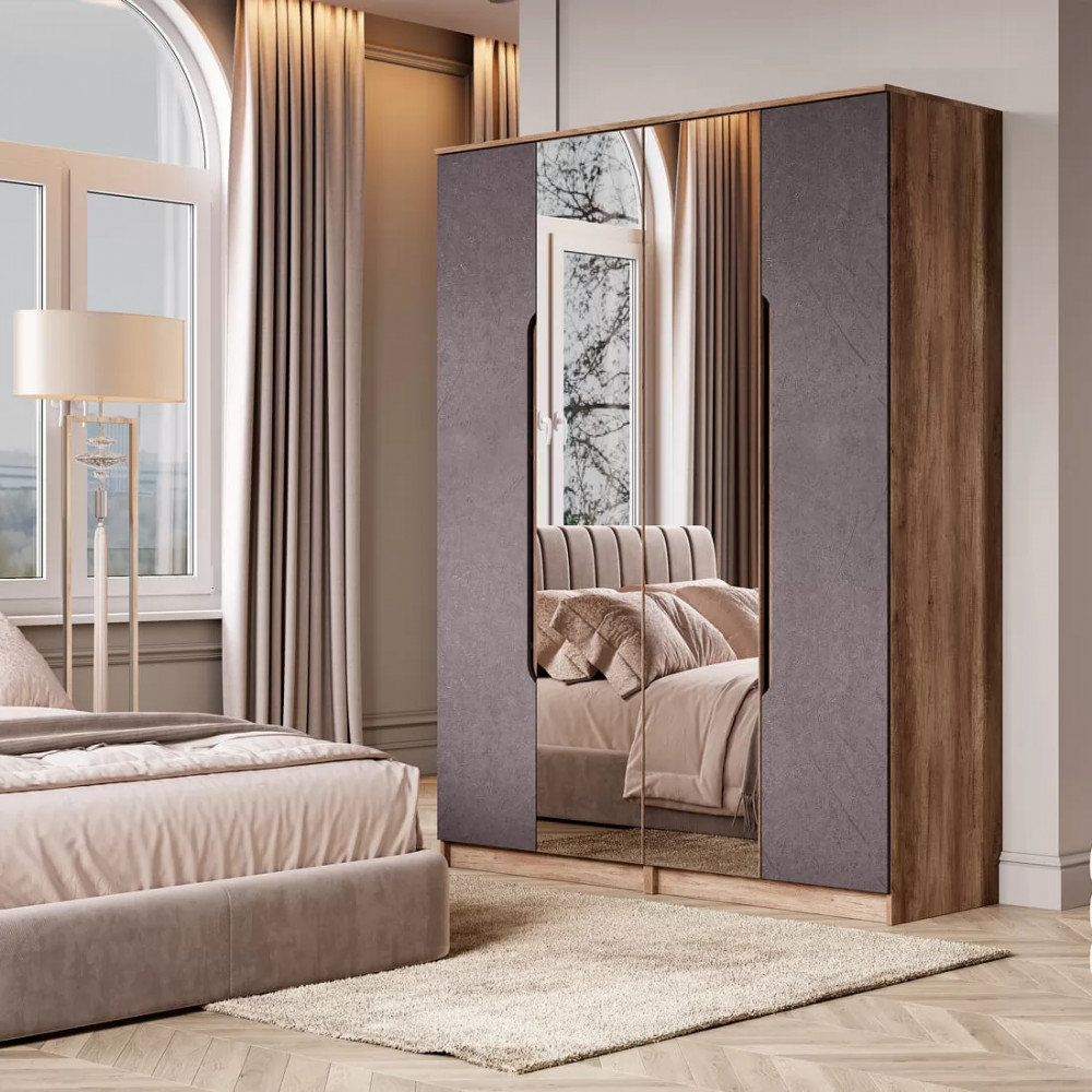 -одна створка с оригинальной интегрированной ручкой выполнена в цвете «лофт графит», а вторая – полностью зеркальная.