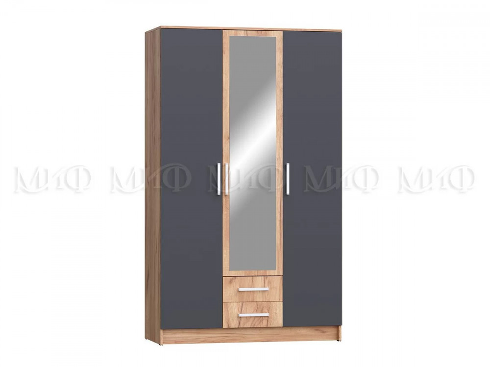 Шкаф для одежды 3-дверный Мартина ЛДСП Графит, Дуб крафт в Муравленко