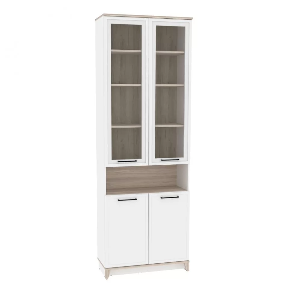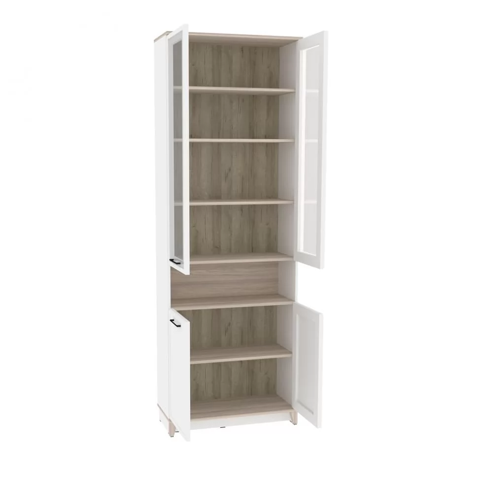 Ширина (мм): 800 Высота (мм): 2308 Глубина(мм): 355 Цвет корпуса: Белый-Блеквуд Сатиновый, Антрацит-Блеквуд Сатиновый Ручка-скоба металлическая (черный матовый) нагрузка на полку (кг): до 10 Материал корпуса: ЛДСП Материал фасада / вставок: ЛДСП