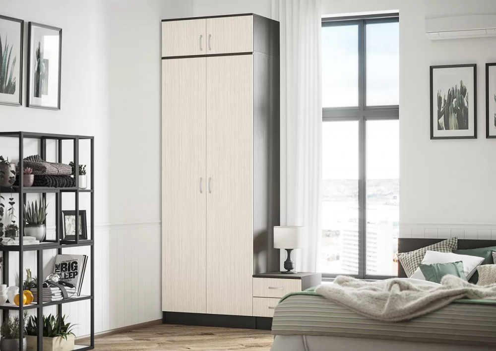 Ширина (мм): 800 Высота (мм): 2120 Глубина (мм): 520 Материал: ЛДСП Цвет: Дуб белфорд/Венге, Ясень шимо светлый/Ясень шимо темный Вес, кг: 61 Количество упаковок: 3 Коллекция: Ронда