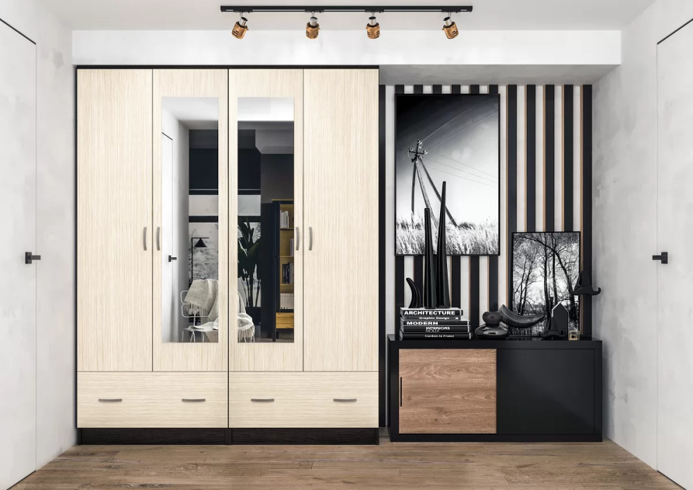 Шкаф ШК-4 станет элементом спальни Ронда или дополнит самостоятельный интерьер