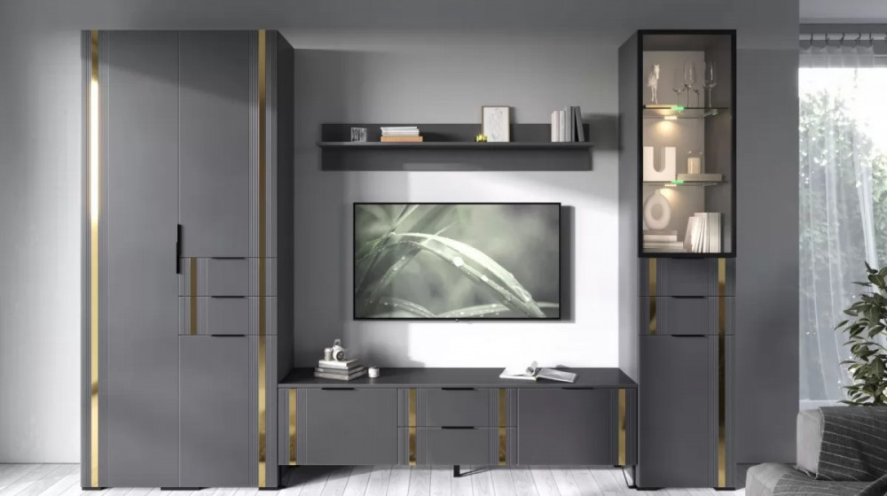 • Декор фасада: стальная полоса золото