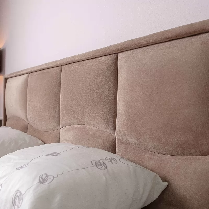 Кровать Brownie с изголовьем из микрофибры цвета brown-grey. Мягкие подушечки образуют рисунок - волну, обрамляющая изголовье рама укутана в мягкую ткань. В изножье кровати - необычные опоры со скосом. Рекомендуемая высота матраса для кроватей Brownie с подъемным механизмом - 20 см.