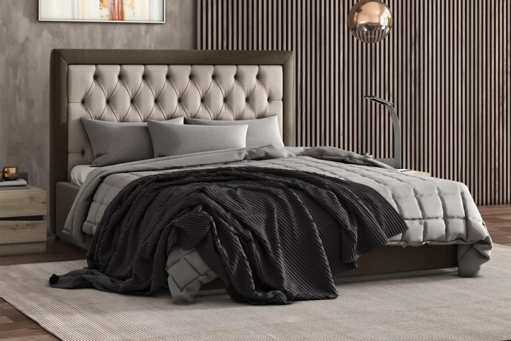 Эффектная, комфортабельная и элегантная - все это об интерьерной кровати Мартина. В первую очередь обращает на себя внимание ее высокое изголовье - оно придает поистине королевский масштаб этой модели. Для отделки используются прочные материалы с отличными эксплуатационными характеристиками. Эта кровать одинаково эффектно будет смотреться и в спальне небольшой квартиры, и в загородном доме.